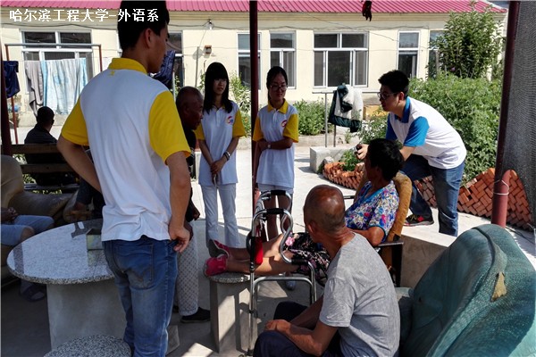 四个小组成员在组长的带领下,分工明确,,通过查找路线、确定行程、事先沟通、有效交流等有序的行动方式,在一天的共同努力下,先后走访了哈尔滨15家敬老院,其中包括道里区红旗助老幸福院、香坊区馨逸老年公寓,南岗区阳光敬老院等。小组成员在与老人交谈和养老机构管理者的沟通的过程中,完成问卷调查,同时给老人带去了许多欢声笑语。在调查中学习敬老事业的相关知识,在服务中体会爱心传递的温暖,在实践中践行当代大学生应有的责任和义务。