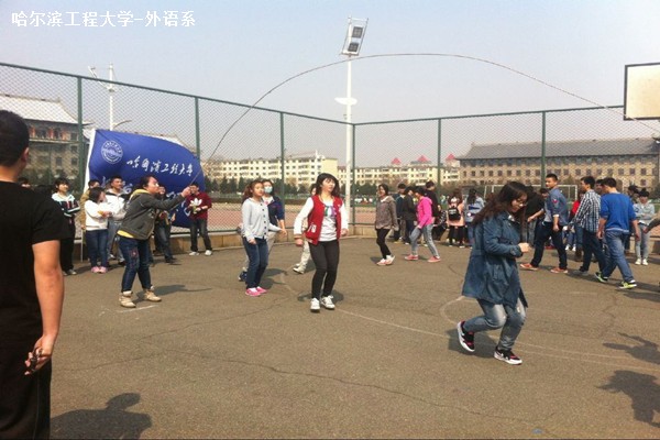 4月19日上午8时15分,外语系同学聚集在军工操场,在体育部部长赵雪的带领下有条不紊得进行对跳绳比赛最后的训练,大家在最后的训练中不断地调整自己与团队的默契度,为了在赛场上能够取得更好的成绩。