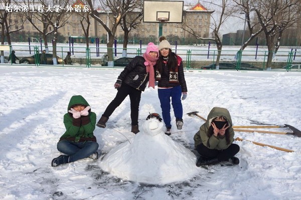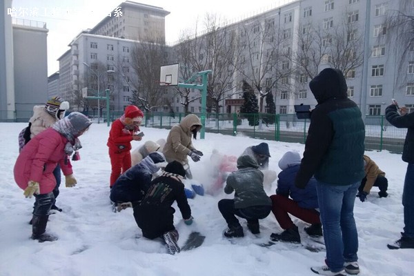 12月17日上午10时,外语系团委体育部在二公寓前的篮球场上组织了一场冰雪狂欢。外语系大一、大二全体60余人参加了此次冰雪竞赛,同学们都玩得非常开心。