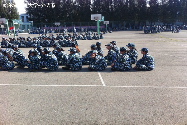 军训刚刚开始,外语系新生们都已饱满的热情迎接这未知的挑战。军工操场处处可见整齐的队列,不论是烈日炎炎,还是风雨凄凄,队列总是整齐划一,训练的正是同学们的纪律和意志;大小美食堂挤满了集中用餐的教官和同学,大家在规定的时间内有序进餐,寝室内务自觉整理,熄灯后按时就寝,无一不体现了军人训练有素的作风。白天的训练总是以嘹亮的军歌结束,夜晚的学习又总是以教室放映的纪录片开始,军训生活就像一场身体的行走,灵魂的旅行,无时无刻不对学生进行综合素质的培养和提高。