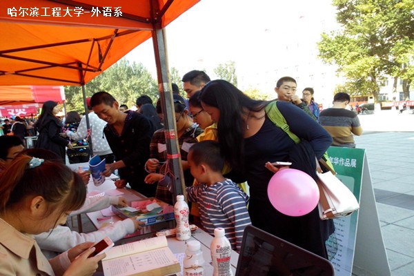 上午,外语系科协工作者就开始投入到展板、条幅等宣传品以及展示区、游戏区、体验区的布展工作。布置工作完成后,活动正式开始。外语系展示的作品是学生论文,以及学生参赛作品的展示。另外我系的活动是猜谜语,这也吸引了许多人前来尝试,在我们的展区前也十分热闹。下午,游戏时间正式开始,科协成员积极参加其他院系活动的同时,也准备了自己的游戏―双人夹气球,在有序的组织下,游戏进行的相当顺利,参加游戏的同学也表现得相当开心。