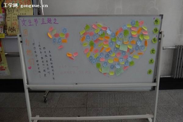 女生节于20世纪90年代初起源于山东大学,发展于中国各高校,是一个关爱高校女生、展现高校女生风采的节日,也是校园趣味文化的代表之一。本次活动中,外语系的同学们利用小小的便利贴来表达自己对身边女生朋友的感激、祝福与关爱之情,最后,由便利贴制作而成的祝福展板于基础实验楼一楼大厅摆放。